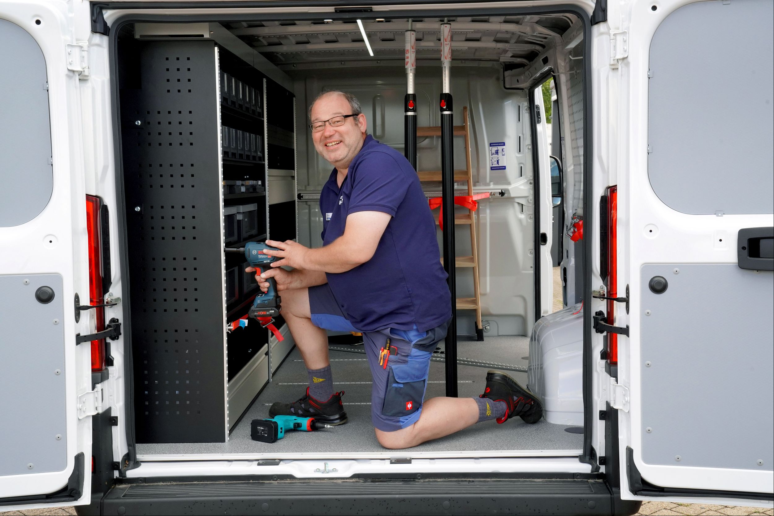 Die Regaleinrichtung, Ladungssicherung und Dachträger sind speziell auf die Anforderungen im Handwerk der Elektroinstallateure ausgelegt. Individuelle Anpassungen sind selbstverständlich möglich.